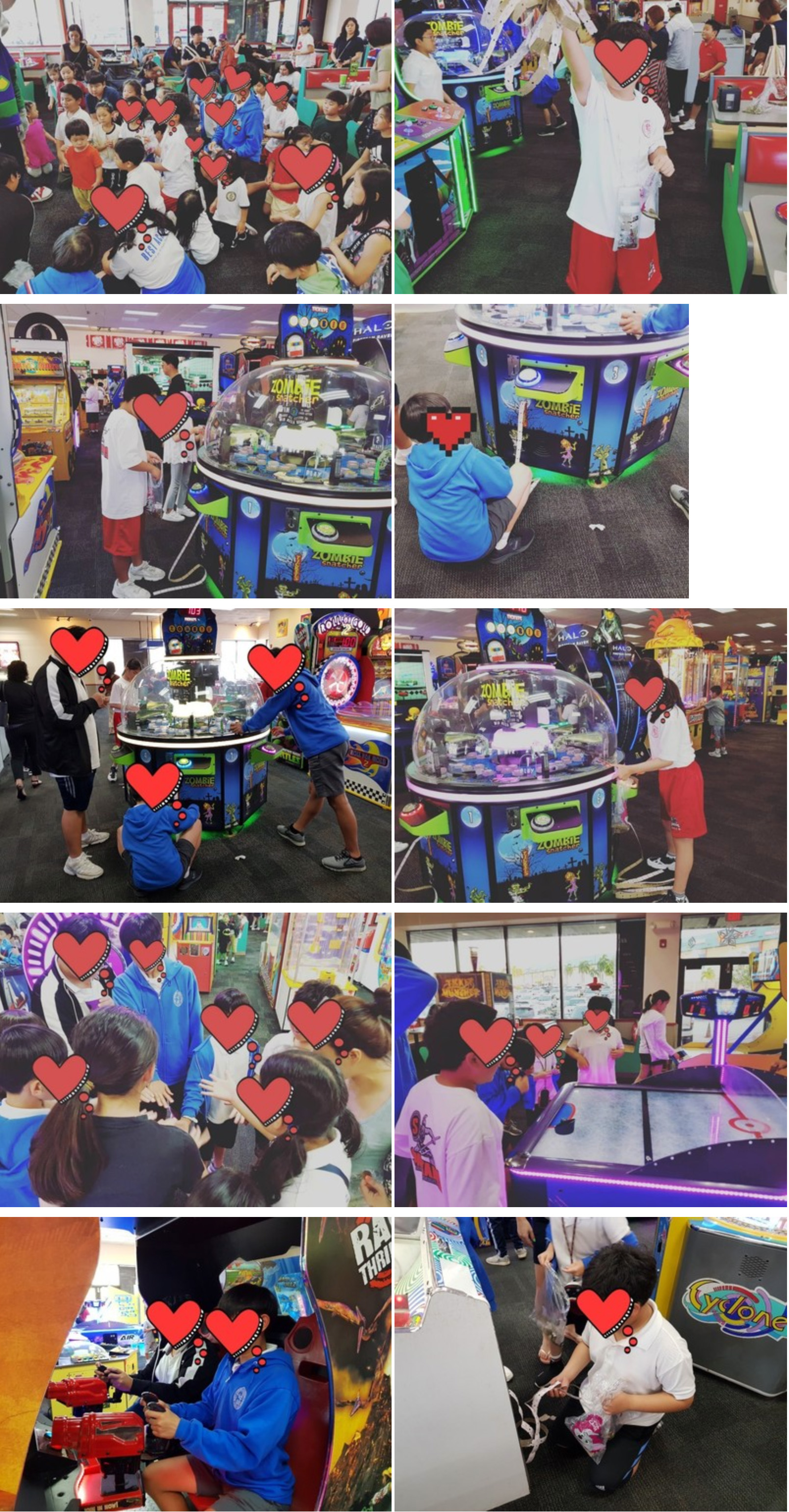 3주동안 공부하며 고생했던 아이들을 위해 골프챌린지의 상품으로 나누어 줬던 게임코인을 갖고 게임장에 갔습니다.